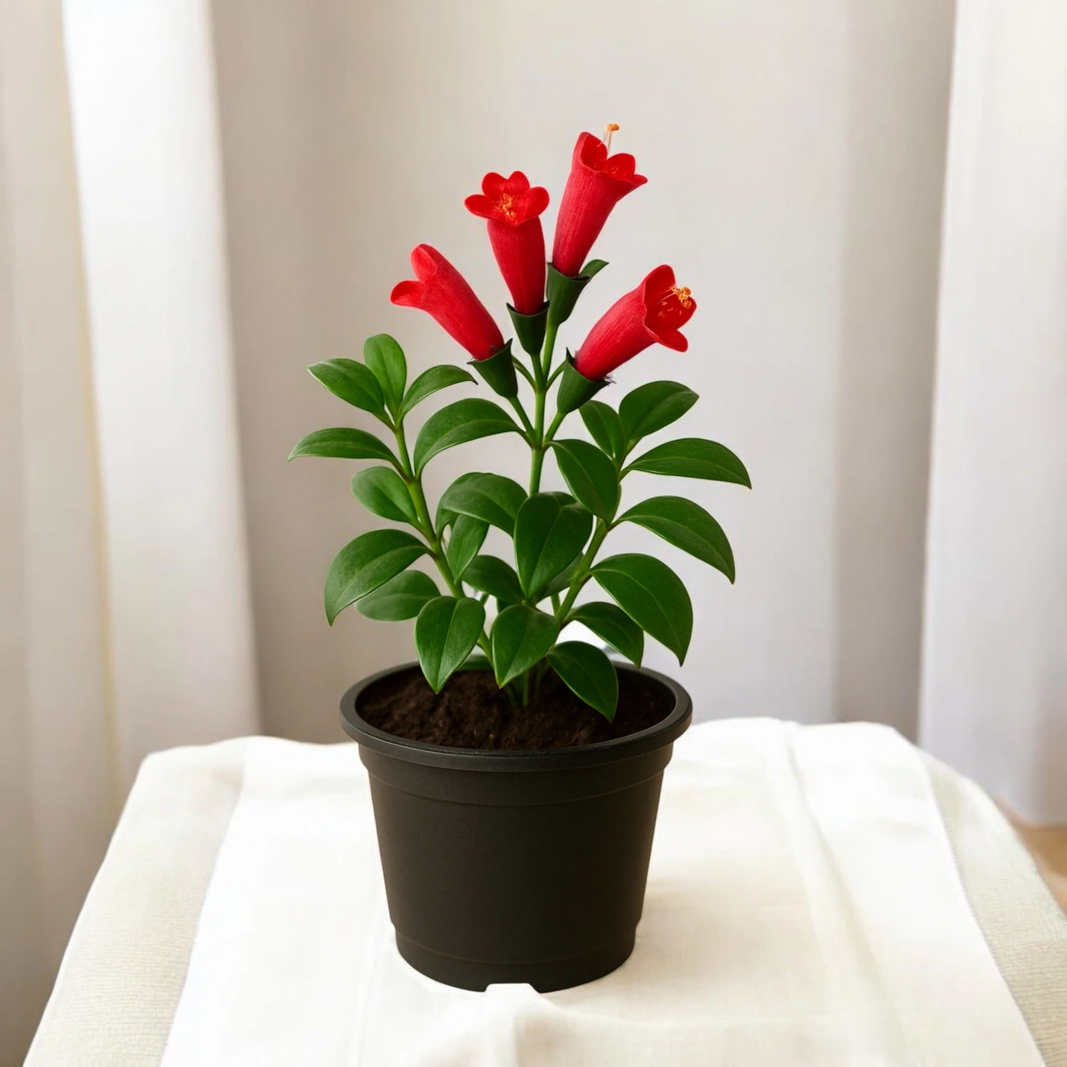AESCHYNANTHUS IS A GENUS OF TROPICAL EVERGREEN PERENNIAL PLANTS NATIVE TO SOUTHEAST ASIA AND THE PACIFIC ISLANDS. THEY ARE POPULAR AS ORNAMENTAL HOUSEPLANTS DUE TO THEIR TRAILING OR CLIMBING HABIT AND STRIKING TUBULAR FLOWERS RESEMBLING A LIPSTICK TUBE—HENCE THE NAME “LIPSTICK PLANT.”