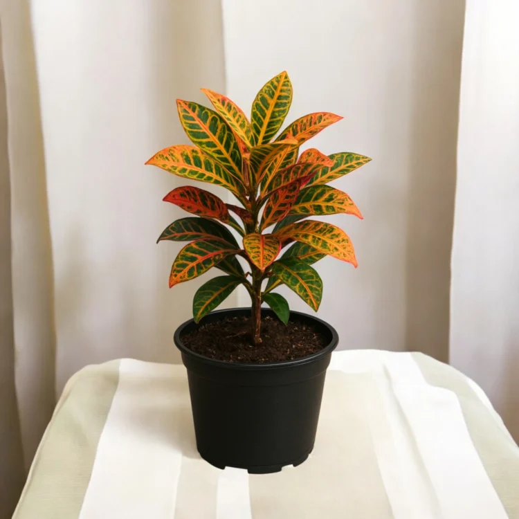 BABY CROTON IS A COMPACT, ORNAMENTAL FOLIAGE PLANT KNOWN FOR ITS VIBRANT, MULTICOLORED LEAVES AND SMALL SIZE. IT IS A DWARF VARIETY OF THE COMMON CROTON, MAKING IT IDEAL FOR POTS, TABLETOPS, BALCONIES, AND SMALL GARDENS.