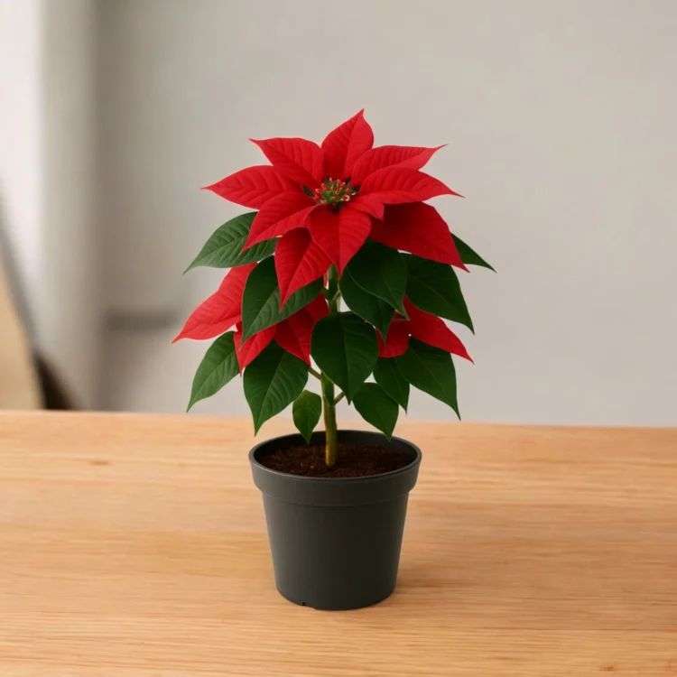 THE POINSETTIA IS A DECORATIVE FLOWERING PLANT MOST FAMOUS FOR ITS BRIGHT RED AND GREEN FOLIAGE, OFTEN ASSOCIATED WITH CHRISTMAS CELEBRATIONS AROUND THE WORLD. NATIVE TO MEXICO AND CENTRAL AMERICA, IT IS COMMONLY USED AS A FESTIVE ORNAMENTAL PLANT DURING THE WINTER HOLIDAYS.