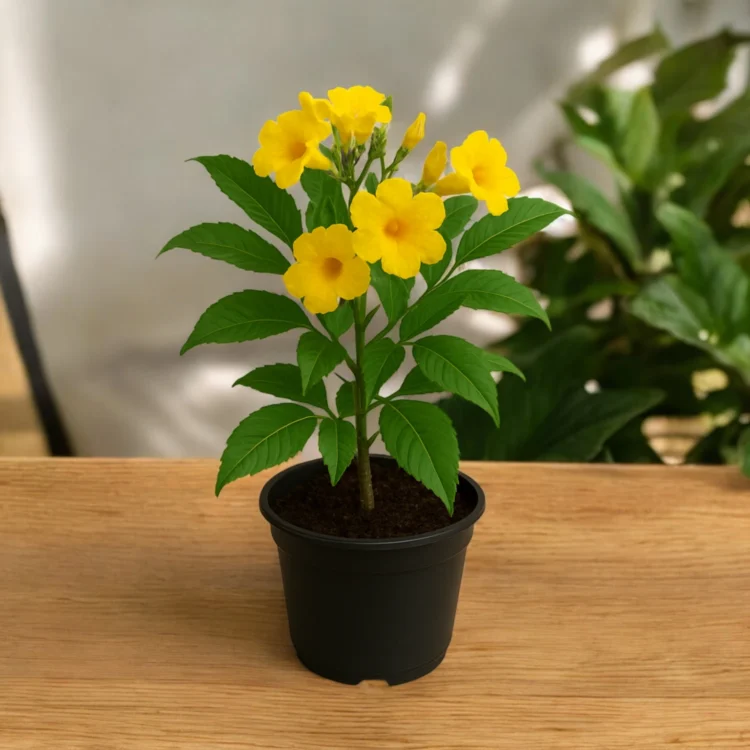 TECOMA BEL IS A VIBRANT FLOWERING SHRUB OR SMALL TREE KNOWN FOR ITS BRIGHT YELLOW TRUMPET-SHAPED FLOWERS THAT BLOOM PROFUSELY THROUGHOUT THE YEAR IN WARM CLIMATES. IT IS NATIVE TO THE AMERICAS AND WIDELY GROWN AS AN ORNAMENTAL PLANT FOR ITS CHEERFUL BLOOMS.